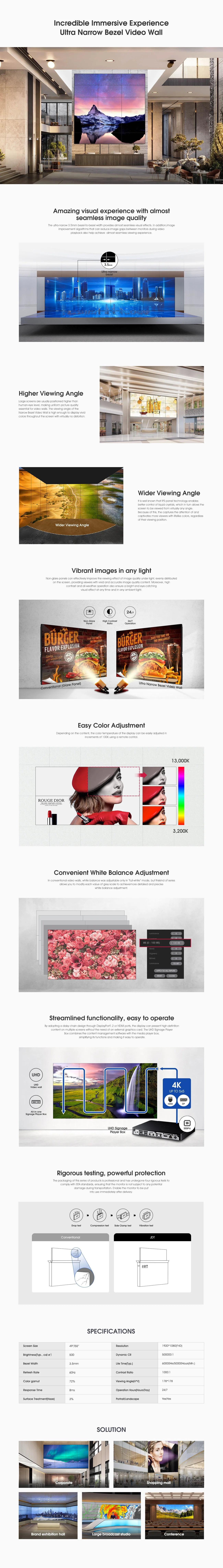 Video Walls › Ultra Narrow Bezel Video Wall Image 1 of 2 Image 2 of 2 Ultra Narrow Bezel Video Wall $999.00 3.5mm 49"/55"Incredible ImmersionHigher/Wider Viewing AngleEasy Color AdjustmentVibrant images in any light Quantity: Add To Cart Added! 3.5mm 49"/55"Incredible ImmersionHigher/Wider Viewing AngleEasy Color AdjustmentVibrant images in any light For inquiries, please click here!